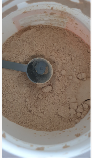 이 제품은 파우더 형태이기 때문에 통 안에 고운 가루가 들어있습니다. (통 안에 스푼이 안 보여서 다른 스푼을 대체로 사용하고 있습니다.)