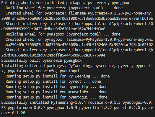 정상적으로 pyautogui가 파이선 개발환경에 설치가 된 것을 확인했습니다.