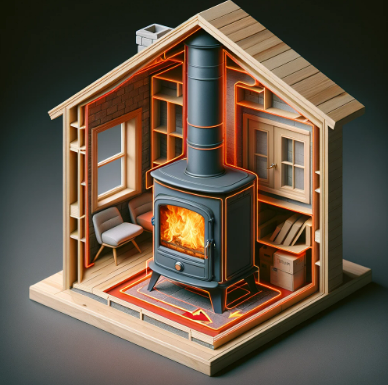 보통 난로는 으로부터 1m 이상 떨어진 곳에 설치하여야 합니다. 만약 벽과 너무 가깝게 두면 복사열로 인해 주변 가구나 벽지가 탈 수 있으니 조심하세요! 또한 가스나 기름 등 연료 종류에 따라서 연소 시 발생하는 연기가 실내 공기 중 산소 농도를 떨어뜨려 질식 사고 위험이 있으므로 반드시 환기가 잘되는 곳에 두어야 해요.