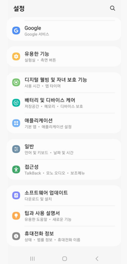 설정 메뉴를 살짝 내려보면 '휴대전화 정보'라는 곳이 있어요. 여기가 우리의 다음 목적지랍니다.