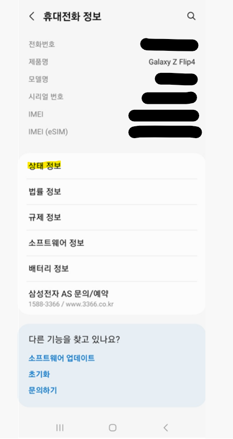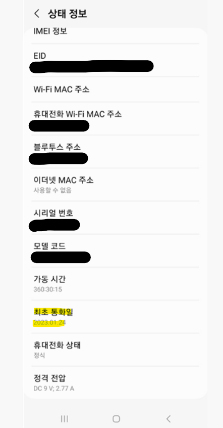 휴대전화 정보를 클릭하고 '상태정보'를 찾아주세요. 여기에 최초 통화일이 숨어있어요.