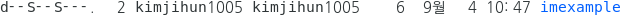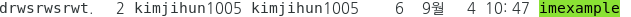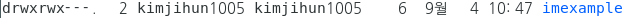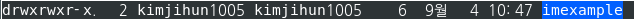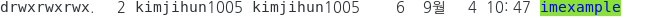 ①d ②rwxrwxr-x ③2 ④user ⑤user ⑥6 9월 4 10:47 ⑦imexample